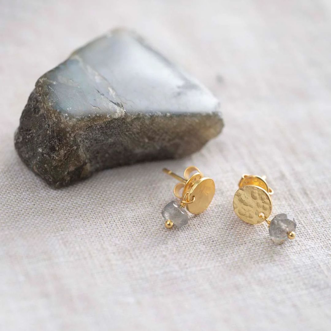 Mini Coin Labradoriet Vergulde Oorbellen – A Beautiful Story