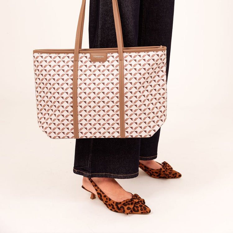 Stijlvolle shopper met grafische print – zwart, beige of bruin
