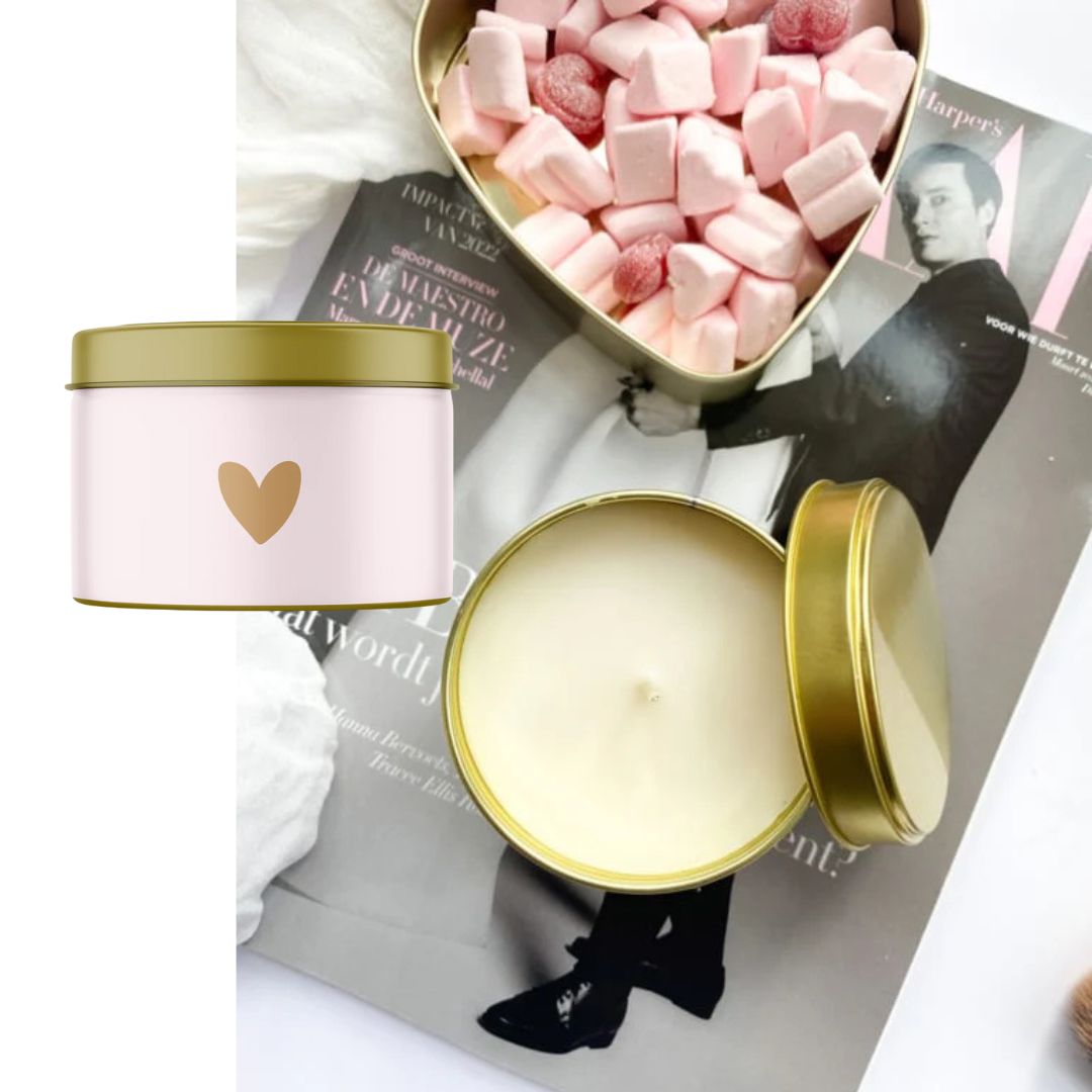 Creëer een warme en liefdevolle sfeer met deze prachtige geurkaars.