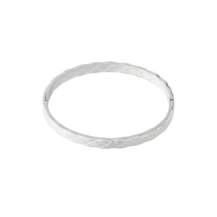 Deze mooie armband met diamantvormig motief is een subtiele blikvanger die elke outfit een elegante touch geeft. Het verfijnde patroon in de vorm van kleine diamanten zorgt voor een speels en stijlvol effect.