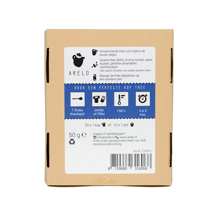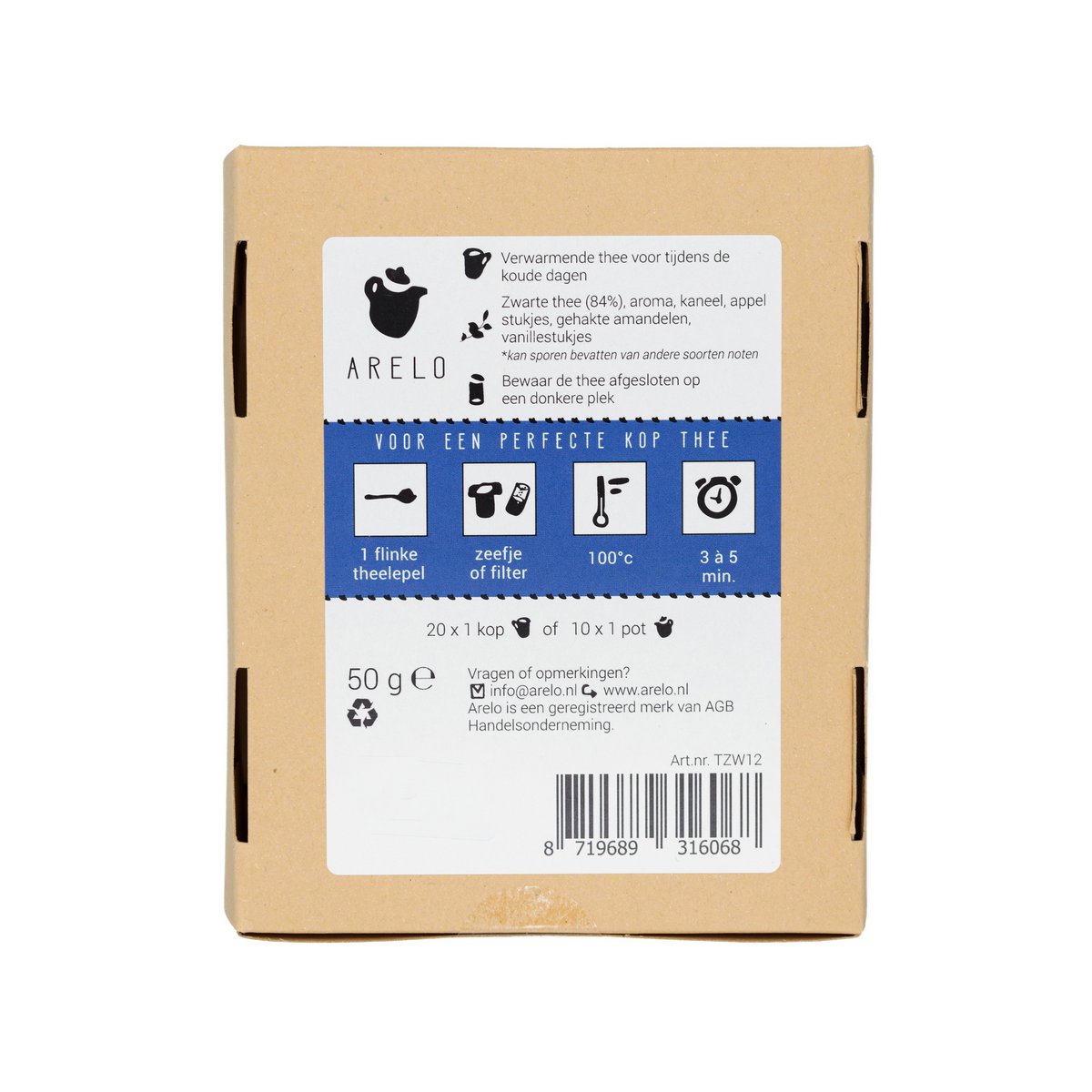 Geniet van de warmte en sfeer van de winter met deze heerlijke winterse zwarte thee. Een zachte blend van zwarte thee, appelstukjes, kaneel, vanille en gehakte amandelen die zorgt voor een verwarmend kopje vol smaak en comfort tijdens koude dagen.