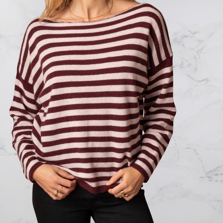 Deze gestreepte cashmere trui combineert Franse elegantie met moderne verfijning. Draag hem met een jeans voor een casual look, of combineer met een rok en hakken voor een stijlvolle avondoutfit. Een echte must-have voor het nieuwe seizoen.