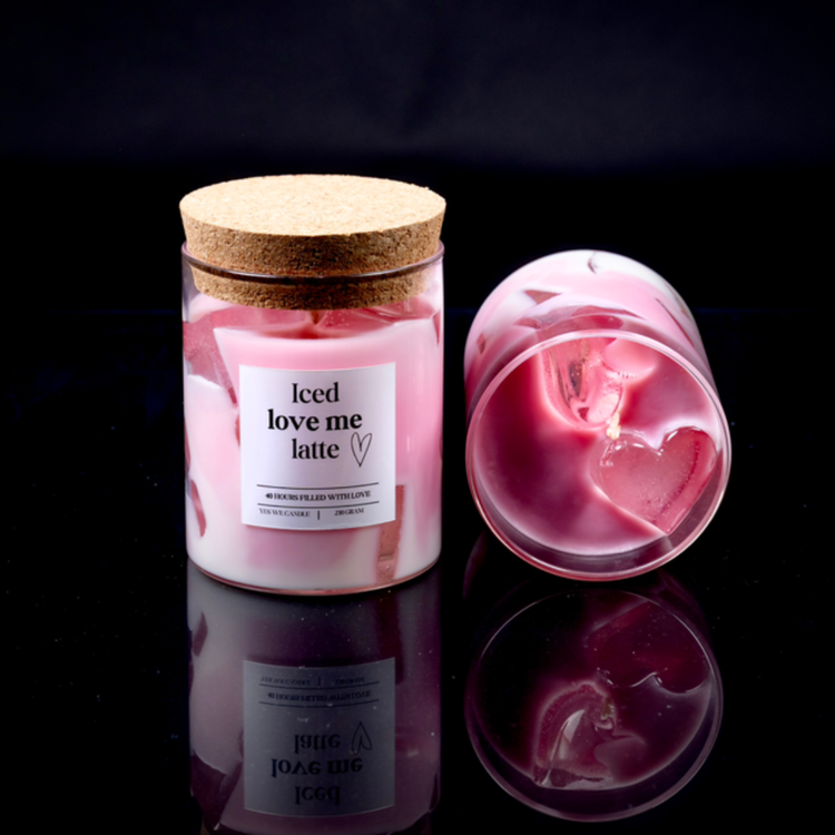 Kaars Love Me Latte – Roze Hartjes IJsblokjes | Geur: La Vie Est Belle